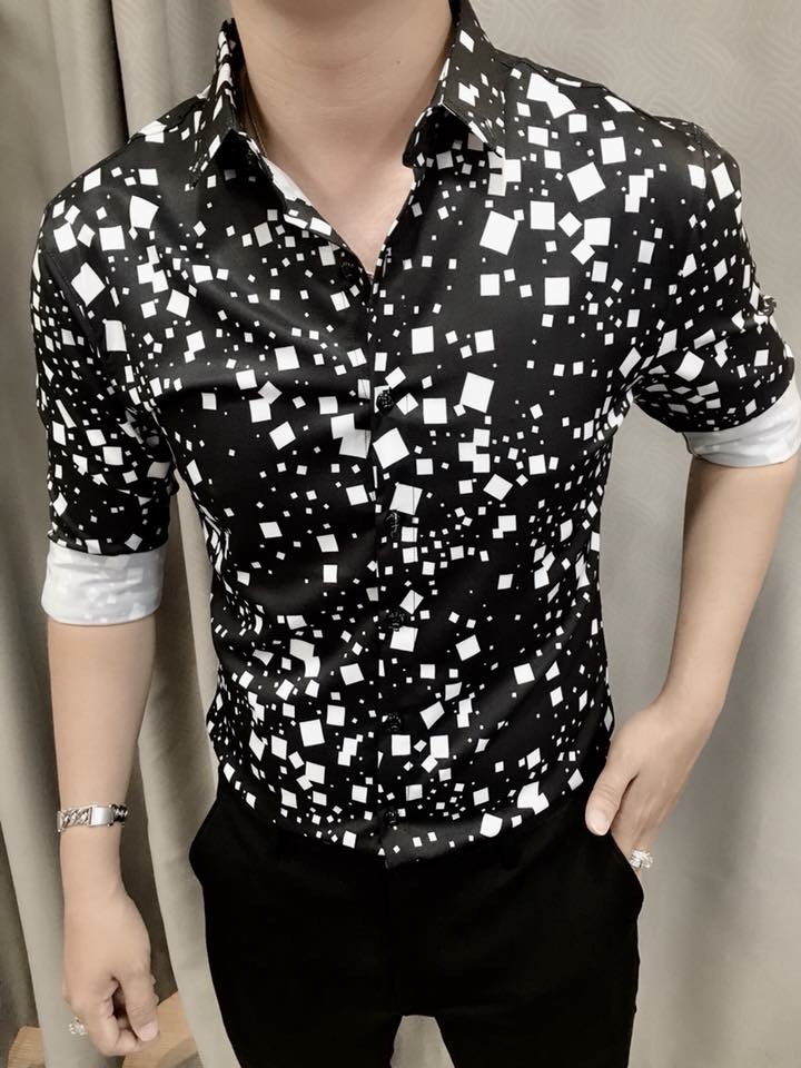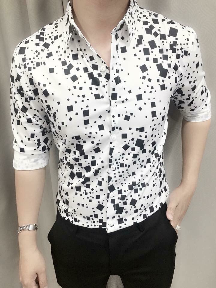 - Kiểu dáng: áo sơ mi nam body sang trọng phong cách hàn quốc với những họa tiết chấm vuông độc đáo in trên áo